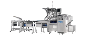 大森解決方案:使用S7680高速枕包機,并配置Y型結構兩通道供料機,與前端鋁塑機兩道出口連接,滿足了枕包機的穩定供料,又縮短了設備總長。枕包機單道輸出與裝盒機連接,實現裝盒機的穩定供料,避免裝盒機制作兩套上料機。