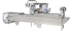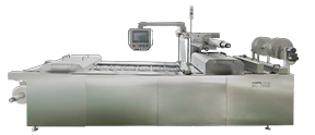 大森解決方案:采用自動上料的方式(機械手)將海參糕放入上料真空包裝機上,包裝完成后,將9道產品合并為1道,經過分道皮帶機,將1道產品分為2道,分別輸送至枕包機的多段上料皮帶上,將產品拉開均勻的距離,輸送至枕包機進行枕式包裝,之后進行裝盒、稱重、金檢、貼標、激光打印等操作,最后進入開箱封箱一體機進行最終裝箱操作。