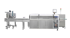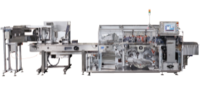 大森解決方案:使用S7680高速枕包機,并配置Y型結構兩通道供料機,與前端鋁塑機兩道出口連接,滿足了枕包機的穩定供料,又縮短了設備總長。枕包機單道輸出與裝盒機連接,實現裝盒機的穩定供料,避免裝盒機制作兩套上料機。