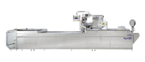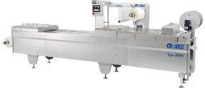 大森解決方案:采用自動上料的方式(機械手)將海參糕放入上料真空包裝機上,包裝完成后,將9道產品合并為1道,經過分道皮帶機,將1道產品分為2道,分別輸送至枕包機的多段上料皮帶上,將產品拉開均勻的距離,輸送至枕包機進行枕式包裝,之后進行裝盒、稱重、金檢、貼標、激光打印等操作,最后進入開箱封箱一體機進行最終裝箱操作。